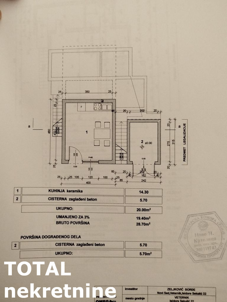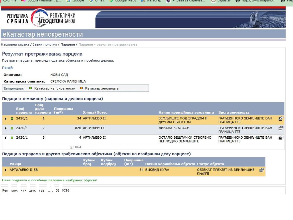 Agencijska oznaka nekretnine 3091565, Sremska Kamenica, Artiljevo. Prodajemo vikend kuću na obroncima Fruške Gore, Sremska Kamenica, Artiljevo. U prelepom prirodnom okruženju, a na samo desetak km od grada. Objekat je uknjižen kao vikend kuća, 34 m2, predat zahtev za legalizaciju celog objekta 87 m2, izgrađen na parceli od 864 m2. Priključen na struju , vodom se snabdeva iz cisterne, a postoji mogućnost bušenja bunara. Za dodatne informacije pozovite, 021427088